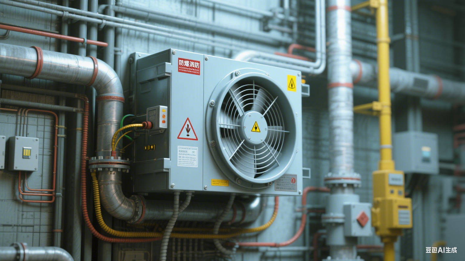 风管防护:风管需具备防爆特性,厚度≥2mm(钢板材质)或≥4mm(玻璃钢材质),风管走向避免直角转弯(转弯半径≥风管直径 2 倍),防止气流冲击产生静电;风管上安装防火阀(动作温度 70℃),与风机联动,火灾时自动关闭。