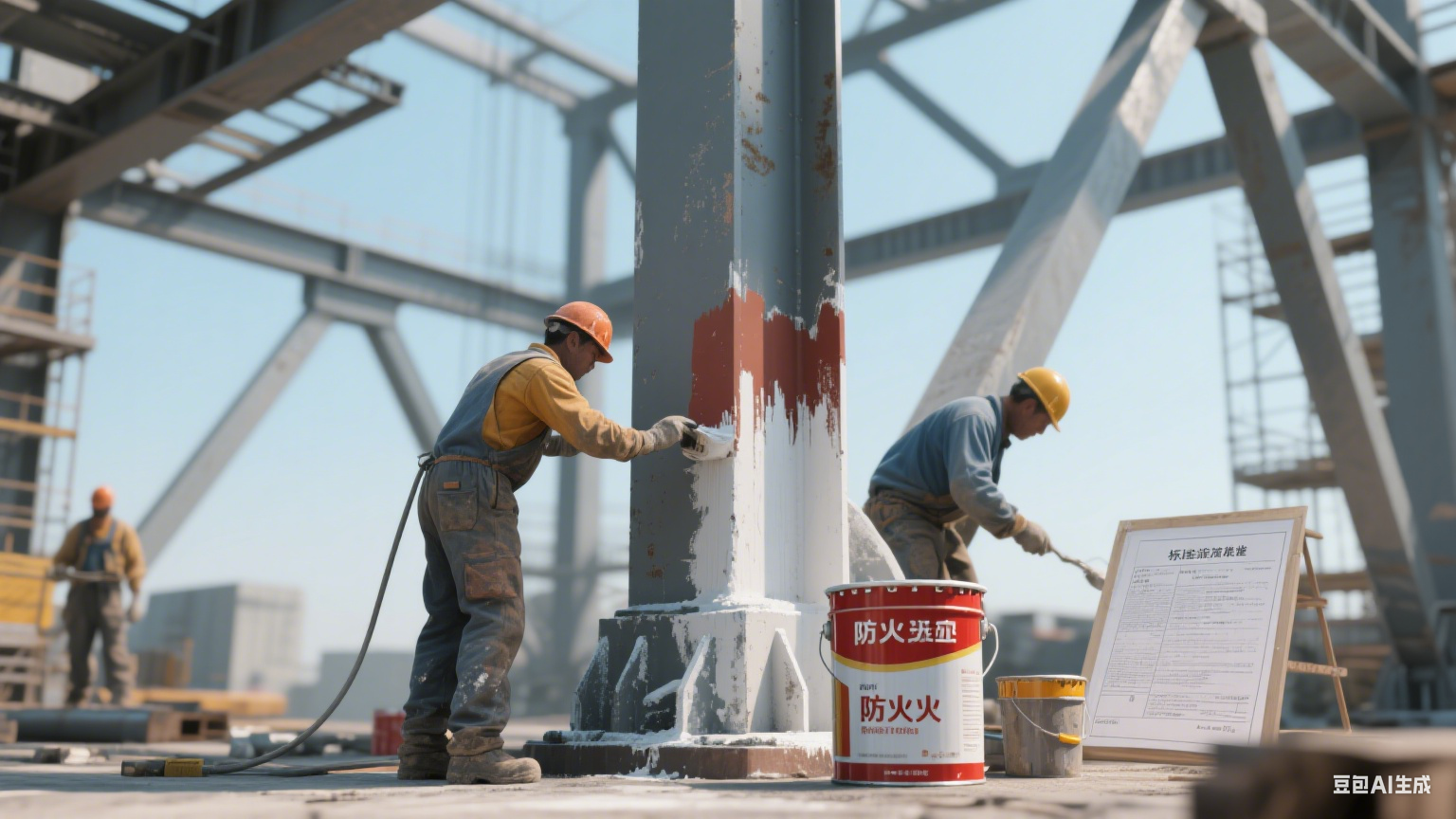 腐蚀性环境(如化工厂、海边):选择 “防腐型防火涂料”,底层需涂刷防腐底漆,防止基材锈蚀导致涂层脱落。